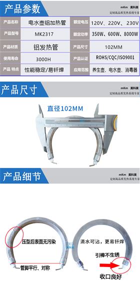 电水壶发热管MK2242旅行水壶发热管MK2018
