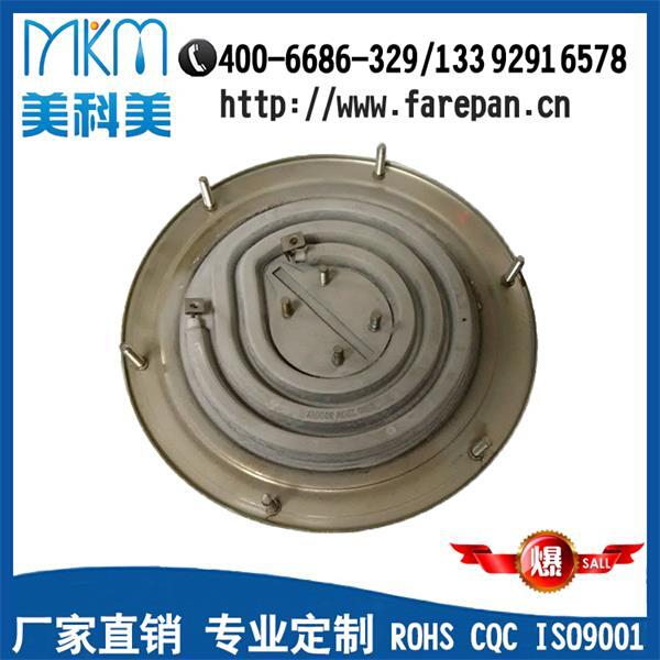 中山美科美今年5月中接到东莞某厨具厂罗生来电,要求定制3KW煮面炉发热盘,并于次日拿了样板直接到厂里洽谈,要求按样板制作,同时寿命要求连续工作720H不烧坏。对于这种近乎苛刻的要求,我相信很多发热配件生产厂家并不敢承接这种业务,而中山美科美从事发热配件行业20年经验且工程出身的陈总,当场拍板可按客户要求制作,且承诺如果寿命达不到连续工作720H,模具费全数退还客户。这让客户没有后顾之忧,并当场确定了合作关系!