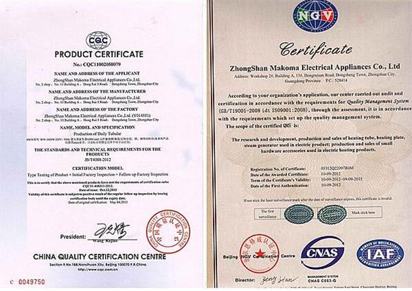 二.生产煮面桶发热盘的厂家证书是否齐全?