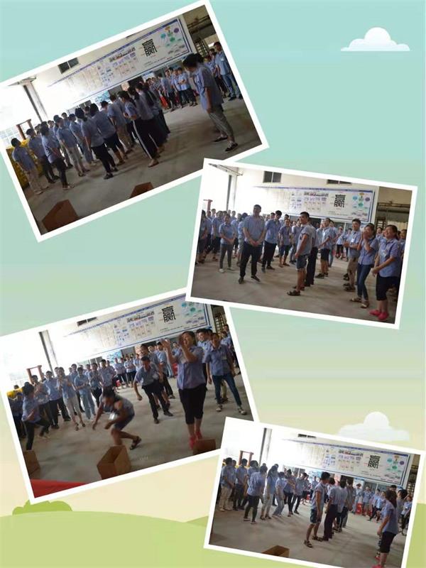 今天周一,7月份的第三个周一,中山美科美开水煲电加热管厂举行夹书接力活动。十个小组,每组推荐5个人参加,把书放在颈部夹紧就转递到下一个人,用时最短最快的一组,分出前三名。