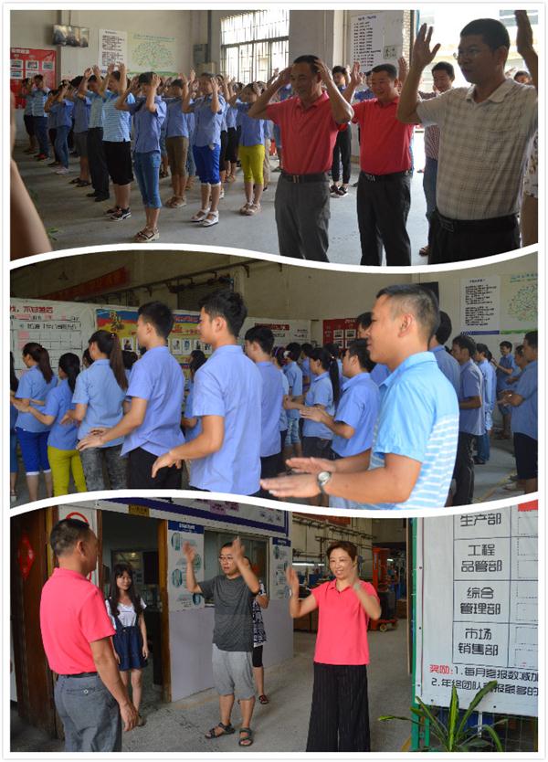【拍拍操】可以锻练个人的应变能力哦,说得越快,动作就要跟着做,而且不能乱,我们在家还可以教小朋友一起做哦。看下图:美科美开水桶电热盘厂的人员一起在做拍拍操...