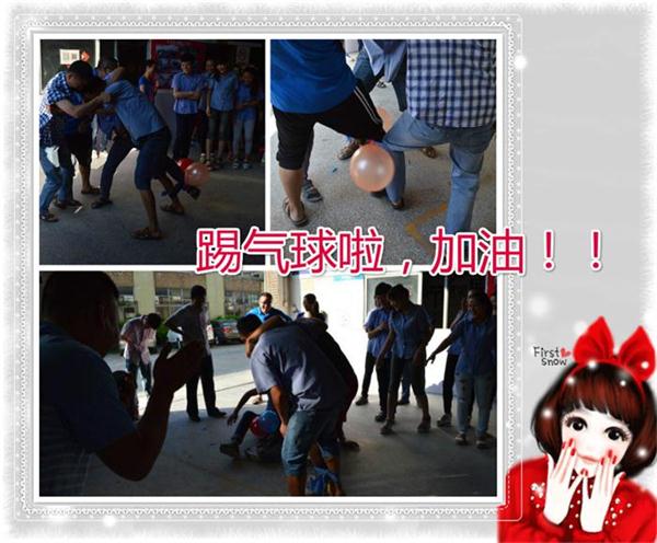 踢气球!!!加油,旁边的同事不停地向自己组的同事加油着...友谊第一,比赛第二。