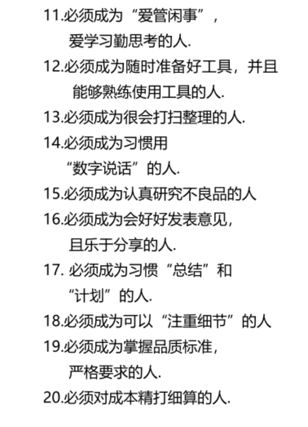 7月21日乐观一组习文清分享美科美工匠精神二十条之第十九条:《必须成为掌握品质标准、严格要求的人》