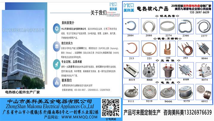 了解更多关于中山市美科美企业动态或铝发热管、电热盘、不锈钢管、铁管、压铸件产品信息可以登录以下信息进行咨询,谢谢