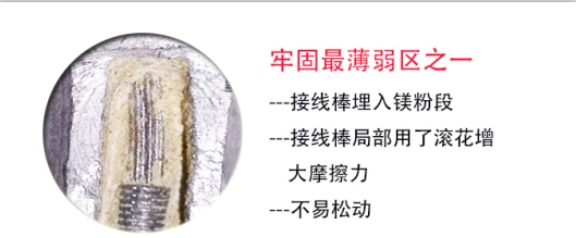 3.发热管冷针采用滚花结构,增大磨擦力,冷针不易松动。