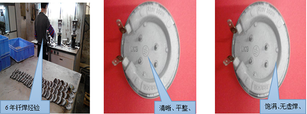 2.美科美发热盘钎焊工技术高有5年以上的焊接经验,钎焊质量很好。