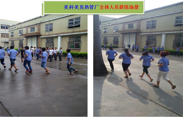 努力工作也要有个好身体,美科美发热管厂每天坚持每天早会,每天晨练:
