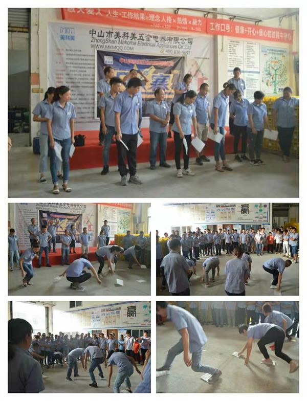 中山美科美发热管厂今天组织小组PK前顾后望游戏,公司10个小组,每组4人参与。