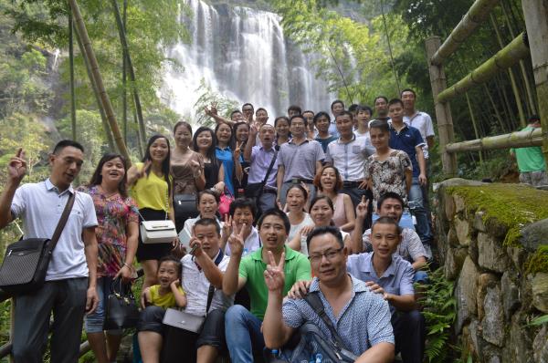 中山美科美发热管厂全体人员重游千泷沟大瀑布,千泷沟大瀑布位于广州从化区良口镇锦村的一条峡沟,落差80多米,宽度280多米,飞流直下,响声震谷,气势非凡。