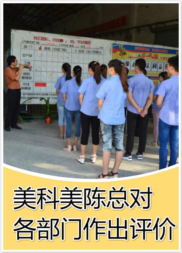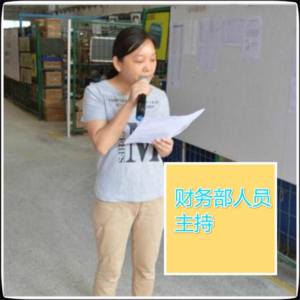 今天周一是总结上个月的团队评比得名,主持人是由美科美财务人员主持: