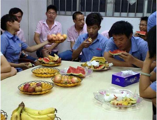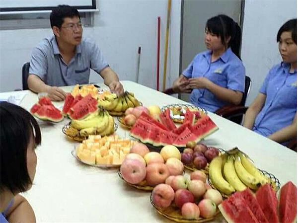 分析完后,大家一起享受甜美的瓜果:有甜瓜,有西瓜,有蜜桃,还有美科美电热管厂的浓浓人情,四溢开来。