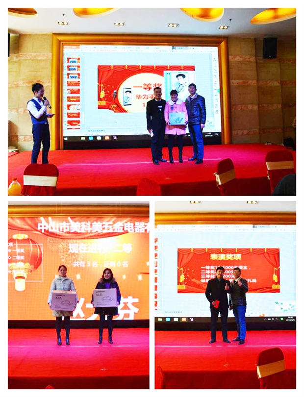中山市美科美五金电器有限公司在2018年2月6日举行八年庆典暨颁奖晚会,全公司的人员欢聚一堂。我们和大家一起分享丰富多彩的庆典和颁奖节目。