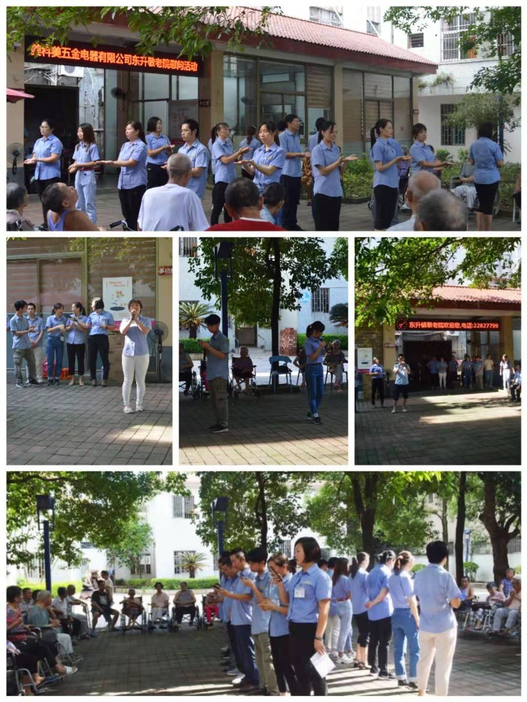 中山美科美发热管厂的同事们给老爷爷、奶奶们表演唱歌、吹芦笛、还有相亲相爱手语舞,当然东升这里的老人家是讲白话,不过在沟通方面问题并不大,因为我们也有很多同事能会说白话,唱粤语歌。后来老爷爷还是比较喜欢听革命老歌,我也是可以放革命老歌他们听。想想几十年前的他们,多不容易啊。感恩他们当年的付出,现在社会才更美好。