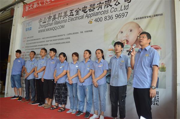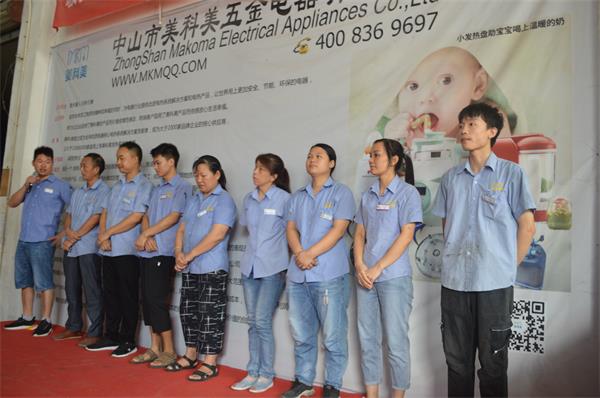 中山市美科美发热盘厂今天举办6月份优秀小组评比早会