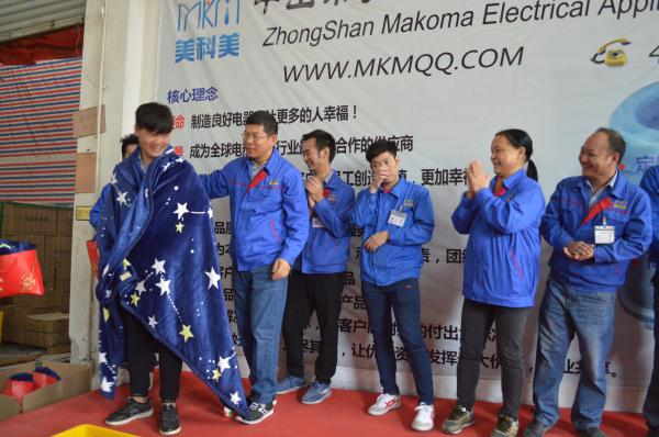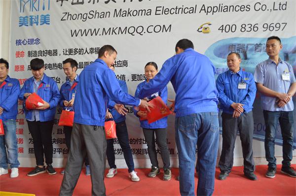 我们美科美糖果机发热盘厂的陈总给优秀员工们一一颁发奖品,为他们感到骄傲