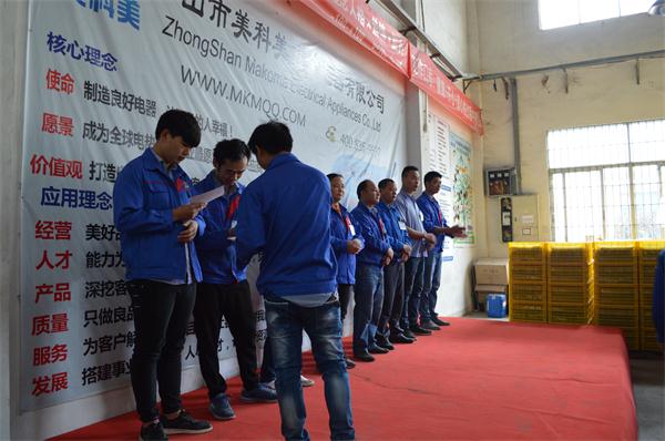 中山美科美糖果机发热盘厂举行优秀员工颁奖早会,每个月都有进步大的伙伴上榜,所谓的付出不亚于任何人的努力啊