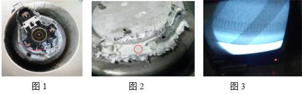收到客户寄来的电水壶220V1500W不良品,反映的问题是煲体在正常煮水时出现爆管现象。原因分析如下:从外观上看,1、发热管管身穿孔,孔周边有黑色粉末(图1)