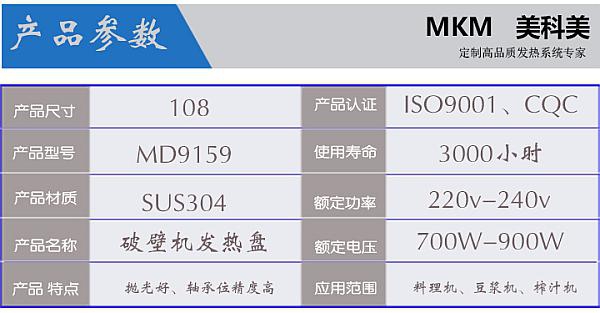 美科美发热盘厂专业生产破壁机发热盘,选破壁机核心配件就选美科美发热盘厂。美科美除破壁机发热盘还有生产各种更多的小家电核心配件发热管,发热盘,如广泛应用在电水壶,豆浆机,电炖盅,电蒸锅,奶瓶消毒器,蒸汽消毒器等家电产品,想了解更多的朋友们请关注我们的网站http://www.mkmqq.com/,会有更多惊喜等着你哦.......也可以通过以下方式联系我们: