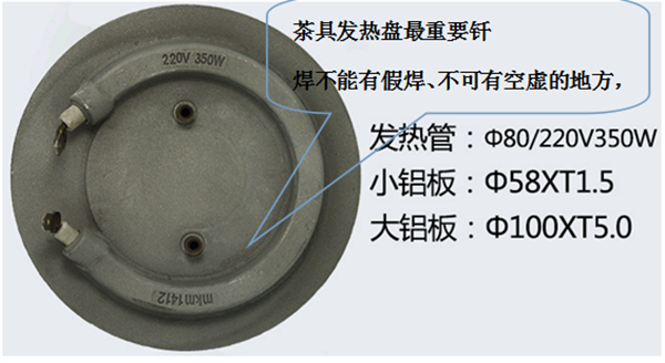 选用在茶具上的发热盘在钎焊方面不可出现假焊,质量要有保障。